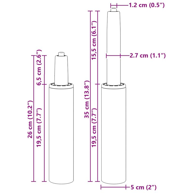 Този газов цилиндър за офис стол е идеален за повишаване на функционалността на офис столовете. Със стилен и практичен дизайн, той позволява лесна настройка на височината за комфортно седене. Неговият модерен вид лесно се вписва в всеки офис, като подобрява производителността и удобството за потребителя. Премиум желязо Модерният газов цилиндър е направен от здраво желязо, което му дава отлична здравина и дълготрайност. Този материал предлага надеждност дори при ежедневна употреба и е дългосрочно решение за офис столове. Гладък механизъм за регулиране Цилиндърът позволява лесна настройка на височината, за да отговаря на персоналните предпочитания. Тази функция поддържа ергономични позиции на сядане, увеличавайки комфорта и намалявайки напрежението при дълги сесии. Клас 3 безопасност С клас 3 на безопасност, газовият цилиндър е идеален за офис среди, поддържайки максимално натоварване до 120 кг, което го прави безопасен и стабилен за седене. Модерен вид Чистите линии и минималистичният дизайн на цилиндъра следват съвременната естетика, перфектно интегрира се в модерни офис среди. Неговата цилиндрична форма е функционална и стилна, което го прави практично и атрактивно допълнение към работното място. Лесни инструкции за поддръжка Поддържането на производителността на газовия цилиндър е просто – просто следвай указанията за не надвишаване на товара, за да осигуриш сигурна и постоянна работа.