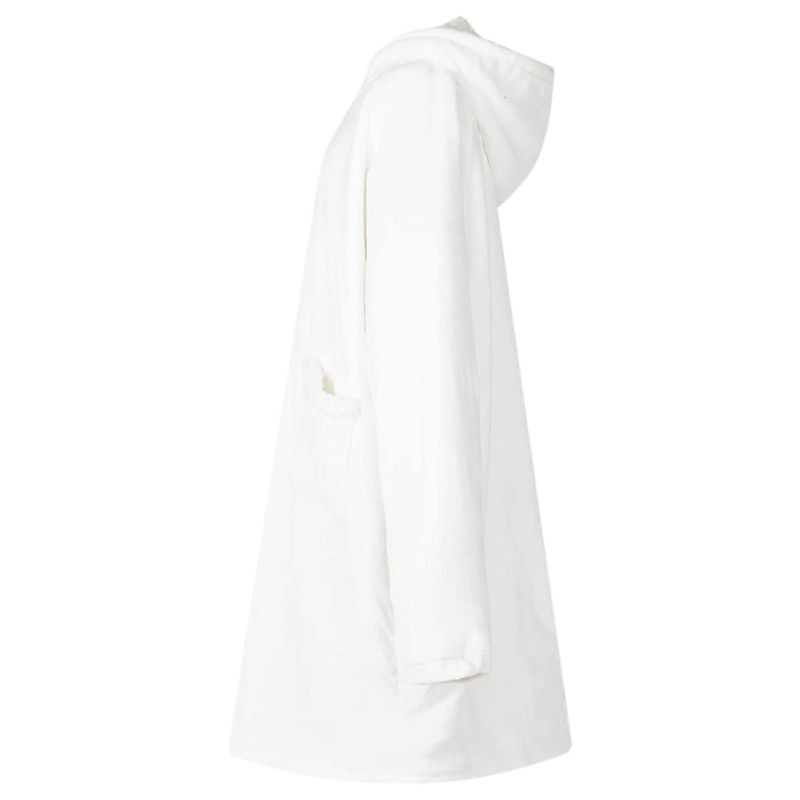 Тази мека блуза с одеяло е подходяща за зимата, идеална за уютно време у дома. С впечатляващ дизайн от полар и фланел, тя предлага нежна прегръдка. Добре проектирана, тя ти дава комфорт, perfect за вечер на дивана, четене или дори за удобство в спалнята. Мек материал: Тази блуза с одеяло е супер мека, направена от пухкав полар и фланел. Осигурява топлина, без да е обемна, което я прави приятна за носене през зимата. Допълнителна топла качулка: Качулката е супер удобна и задържа топлината около главата и врата, идеална за студените дни. Пиеш ли топъл чай или четеш, тя те обгръща в уют. Удобен джоб: Джобът е идеално разположен и ти позволява да съхраняваш важни неща като телефон или дистанционно, без да ставаш от любимото си място. Преносим дизайн: Лека е и лесно можеш да я местиш от стая в стая, за да се чувстваш топло навсякъде у дома. Просто я взимаш със себе си и се наслаждаваш на топлината. Лесна поддръжка: Грижата за нея е лесна с простички указания. Избягвай агресивни химикали и белина, за да запазиш мекостта и цвета й. Грижата е проста, за да се радваш на топлината без лишения.