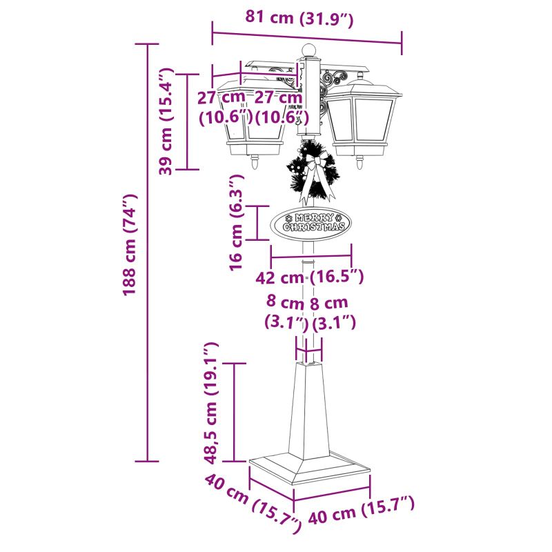 Коледен уличен лампа с 2 фенера Червено 40,5 x 80 x 188 см