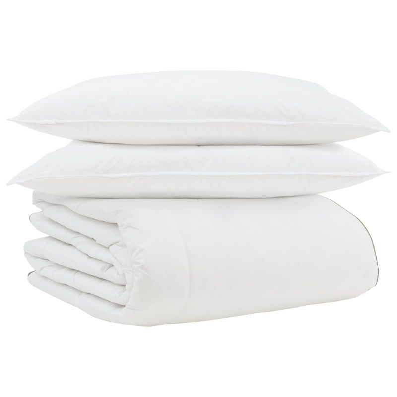 Този модерен комплект завивки вдига нивото на комфорта в спалнята с елегантния си минималистичен дизайн. Перфектен за всяка спалня, гладката текстура и изисканото покритие предлагат приятно усещане. Дава стил на вашето пространство, докато остава топло и уютно – идеално за зимни вечери. Премиум материали: Този комплект завивки съчетава най-доброто от микрофибър и памук за луксозно усещане. Памукът е дишащ, осигурява добър комфорт, а микрофибърът добавя мекота и лекота, обгръщайки ви в утешителна топлина. Включва основни елементи: Комплектът включва 1 завивка и 2 възглавници. Завивката е с изчистен дизайн, който държи пуха на място, за да предотврати студени участъци. Възглавниците са с памучна обвивка и пух, за максимален комфорт. Оптимизирани характеристики: Минималистичният стил е с ясни линии и елегантни детайли, придаващи модерен вид на всяка спалня. Подходящ за тези, които ценят простотата и елегантността. Многофункционални приложения: Проектиран основно за спалнята, този комплект е уютен през зимните нощи. Лесно се вписва в съвременния интериор и е достатъчно универсален, за да се адаптира към различни стилове. Лесна поддръжка: Лесно е да поддържате този комплект свеж благодарение на машинното му пране. Може да се пере до 40°C, запазвайки качеството и улеснява поддръжката с минимални усилия.