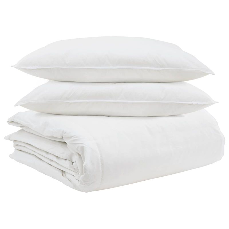 Комплект завивки с възглавница 3 pcs Бяло Пухени пера