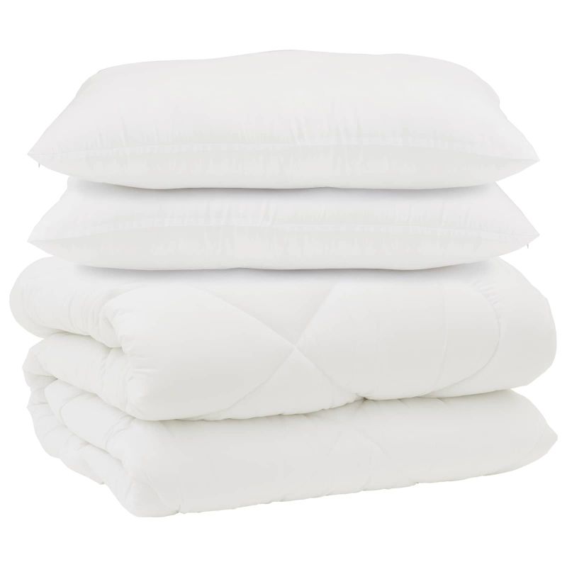 Това одеяло с възглавници носи комфорт и стил в твоята спалня, обгръщайки те в топлина и изтънченост. Неговият модерен дизайн с чисти линии придава шикозен вид, идеален за хора, които ценят простотата и практичността. Одеялото от мек микрофибър и пух предлага луксозно усещане, превръщайки спалнята ти в уютно място. Потопи се в него и се отпусни след дългия ден, а дишащият материал гарантира освежаващ сън през нощта. Луксозни материали Микрофибър и пух осигуряват изключителна мекота и топлота. Микрофибърът е издръжлив и лесен за поддръжка, а пухът добавя разкош. Комбинацията им предлага чудесна изолация за студеното време, подобрявайки съня ти на ново ниво на комфорт. Внимателно проектирани компоненти В комплекта има одеяло и две възглавници, пълнени с полиестерно влакно. Този лек, но топлоизолиращ материал ти осигурява уют през цялата нощ. Възглавниците, с приятна текстура, повишават комфорта и ти предлагат легло, което е истинско убежище. Функционален дизайн С тапицерията от квадратни шевове, oдеялото е визуално интересно и предотвратява скачането на пълнежа, задържайки равномерна топлина. Дишащият материал насърчава циркулацията на въздуха и намалява прегряването за качествен сън. Многофункционален Перфектен за спалня, този комплект одеяло и възглавници е предназначен за вътрешна употреба. Подходящ за всеки, той превръща всяка спалня в спокойно място, където стилът и комфортът се съчетават. Лесна поддръжка Можете да го пере в машина на 30°C, така че поддръжката му е супер лесна. Просто го хвърли в пералнята у дома и ще имаш удобно и чисто легло. Спокойният дизайн ти позволява да запазиш свежестта в спалнята с минимални усилия.