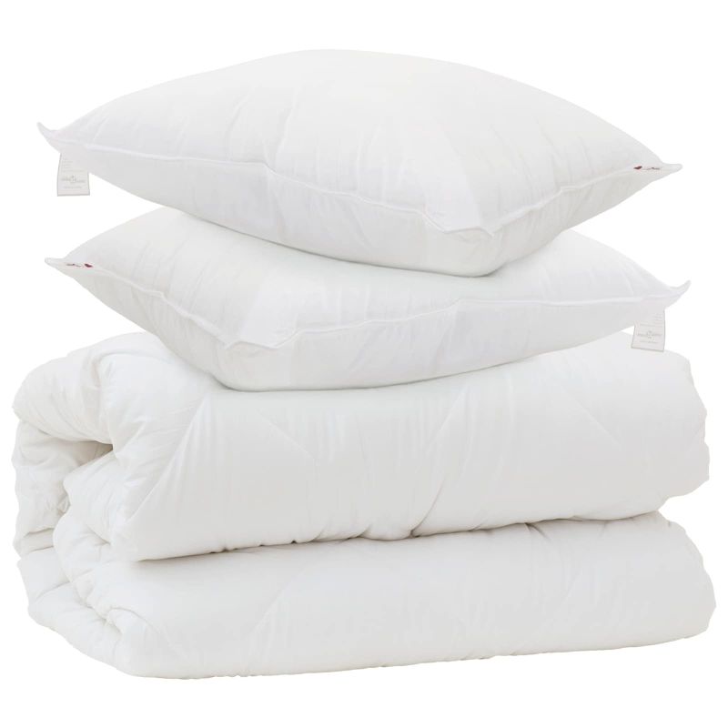 Дюветът от микрофибър с възглавници е страхотно допълнение за всяка модерна спалня, благодарение на стилния си дизайн и гладката текстура. Този комплект предлага уютна и спокойна среда за сън, особено през наситените зимни месеци. Създаден с акцент върху удобството и естетиката, той прекрасно допълва всякакви интериорни стилове, придавайки топлина и комфорт. Материали: Настоящият дювет е изработен от мек и здрав микрофибър, предлагащ достъпно усещане за лукс, съчетаващо комфорт и дълготрайност. Лекотата му улеснява манипулацията, докато мекото му докосване е приятно за кожата. Включени компоненти: В комплекта са включени дювет и две възглавници, които създават хубаво спално решение. Възглавниците съдържат полиестерно и бамбуково влакно за поддръжка и дишаемост, за да осигурят спокоен сън. Характеристики / Функция / Дизайн: Квадратните шевове не просто държат пълнежа на място, а и добавят визуална привлекателност. Дишащите материали подобряват въздушния поток, осигурявайки комфорт през цялата нощ. Препоръчителни употреби: Идеален за зимата, този комплект предлага закрила и топлина, а съвременният му дизайн лесно се вписва в различни интериорни стилове – от минималистичен до еклектичен. Грижа и поддръжка: Комплектът може да се пере в машината при 30°C, което улеснява поддръжката, запазвайки свежест и чистота с минимални усилия.