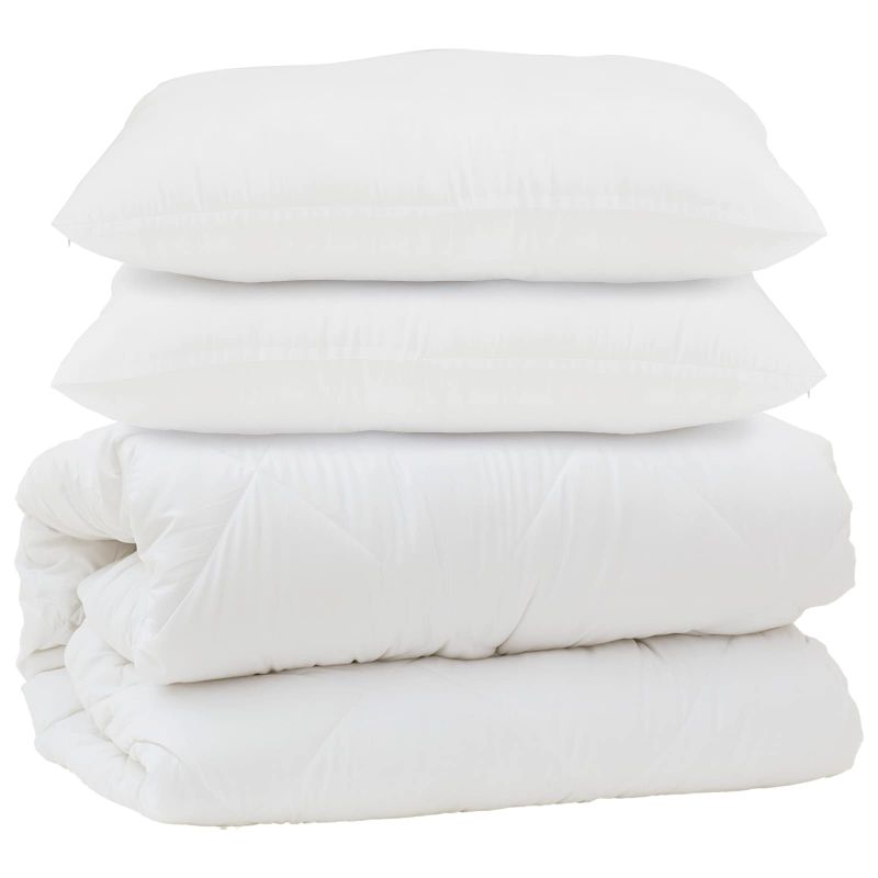 Този минималистичен комплект завивка е супер за всички, които искат комфорт и стил. Със свежия бял design, завивката и възглавниците съчетават простота с елегантност. Проектиран с кутия с прешки, комплектът не само изглежда добре, но и осигурява превъзходна топлина и уют, което го прави идеален за всеки, който обича спокоен сън през цялата година. Независимо дали предпочиташ класически или съвременен стил, този комплект се вписва перфектно. Материал от микрофибър: Комплектът завивка е изработен от качествен микрофибър, известен със своите хипоалергенни свойства, което го прави безопасен за тези с чувствителна кожа или алергии. Микрофибрите са много нежни и предлагат меко, но здраво покритие, което имитира усещането на пух и увеличава комфорта за сън. Дизайн на прешки: Завивката с отличителния си дизайн на кутия с прешки осигурява равномерно разпределение на пълнежа. Това предотвратява образуването на студени зони, поддържайки постоянна топлина. Класираният текстурен вид добавя елегантност и визуална привлекателност. Топлина и комфорт: Идеален за зимата, завивката предлага допълнителна топлина, правейки я надежден партньор през по-хладните месеци. Дебелото й пълнеж осигурява уютна и комфортна среда за спане. Минималистичен стил: Завивката с минималистичен подход предлага безпроблемно допълнение на декора на всяка спалня, съчетавайки традиционни и съвременни стилове. Нейният неразхвърлян дизайн добавя елегантност и изискван вид. Лесна поддръжка: Удобството е от ключово значение, тъй като комплектът може да се пере в машина на 30°C, което го прави лесен за почистване. Неговото меко покритие остава приятно на допир дори след многократни пранета.