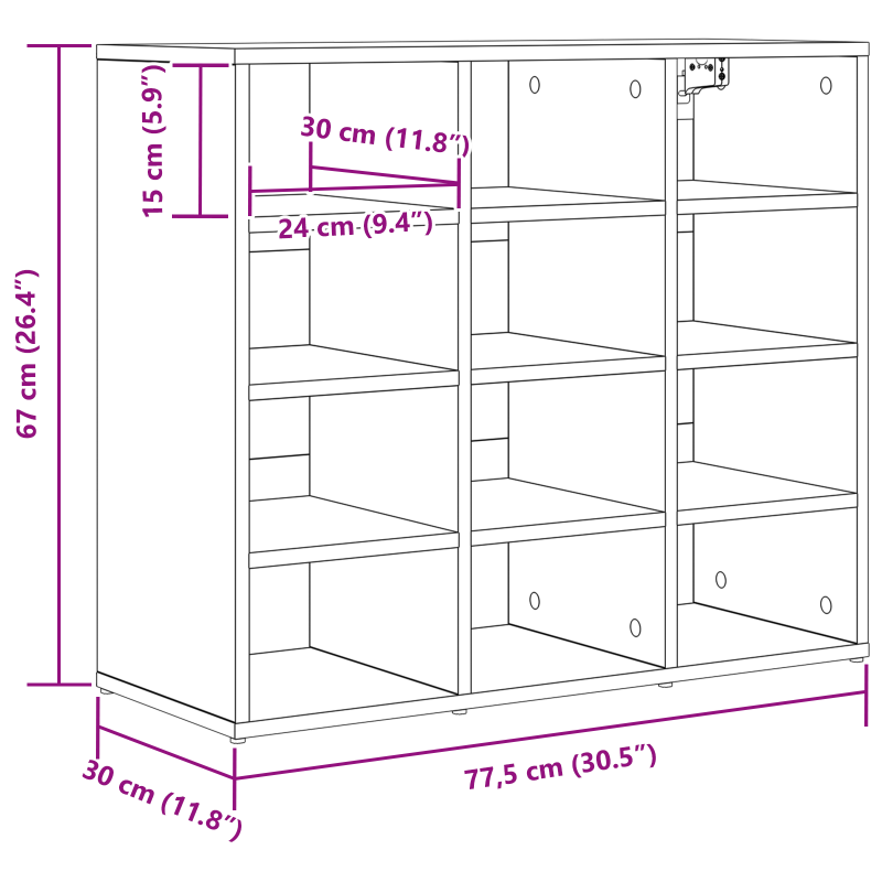 Този шкаф за обувки в коридора предлага стилно и практично решение, което помага да поддържате входното си пространство организирано. Със семпъл дизайн, той подобрява визията на връзката, докато предоставя достатъчно място за обувките. Минималистичният му стил и правоъгълната форма пасват идеално на различни интериори, правейки го гъвкав вариант за всеки дом. Материали: Изработен от инженерна дървесина с гладък финиш, този шкаф е здрав и издръжлив. Тази съставка прави поддръжката лесна и съчетава практичността с елегантност. Включени компоненти: С мощни рафтове, шкафът е проектиран да държи обувките в ред. Вътрешните отделения са специално направени за различни размери обувки, от маратонки до ботуши. Функции / функция / дизайн: Съвременен дизайн, чисти линии и минимална украса, шкафът акцентира на функционалността. Правоъгълната форма оптимизира пространството и е част от категорията шкафове за обувки с отделения за удобно организиране. Препоръчителни приложения: Идеален за коридори, този шкаф преобразува разхвърляни зони в подредени. Подходящ е за семейни домове и апартаменти. Независимо от местоположението, той подобрява както функциите, така и визията. Поддръжка и грижа: За поддържане на шкафа в отлично състояние, просто го изтривайте с суха кърпа. Избягвайте силни химикали. За безопасност, закрепете шкафа с предоставеното стендово крепление.