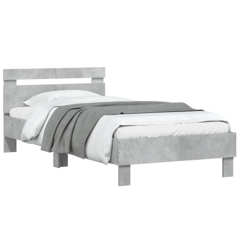 Рамка за легло с табла, бетонно сива, 100x200см инженерно дърво