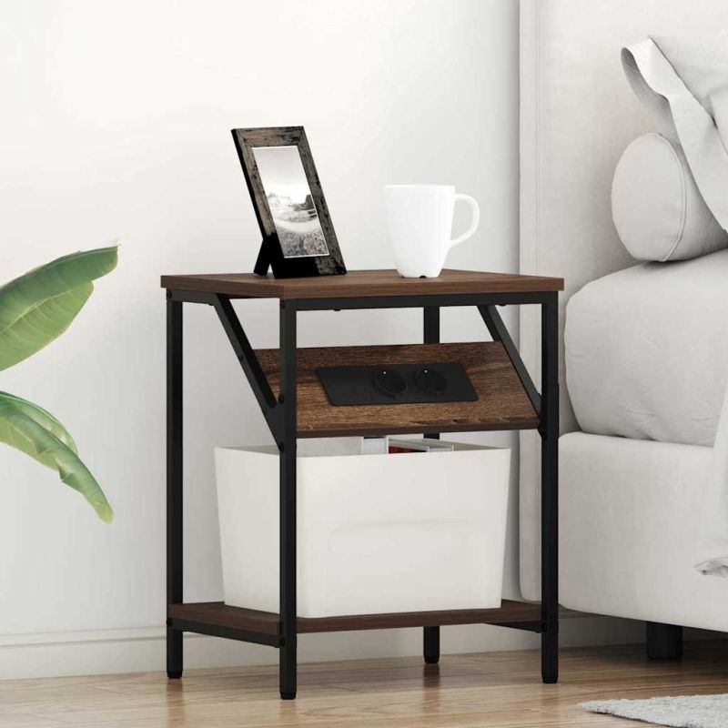 Нощен шкаф 2 pcs Кафяв дъб 38 x 30 x 48 см Инженерно дърво
