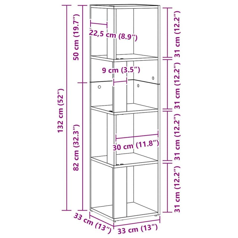 Ъглови стелажи Черния дъб 33 x 33 x 132 см Инженерно дърво