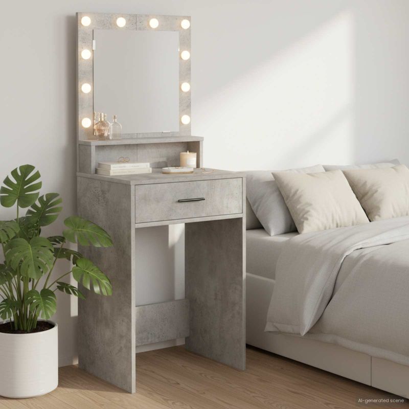 Тази тоалетка добавя стил за домашното пространство с модерния си правоъгълен дизайн и практичното си съхранение. Идеално е за спални, съчетаваща естетика и удобство. С матово покритие, тя прекрасно се съчетава с различни декор стилове, предоставяйки пространство за подготовка. Подходяща е за всеки, който иска да организира личните си вещи и да подобри визията на стаята, като предлага съчетание от функционалност и стил. Матово покритие: Тоалетката е с елегантно матово покритие, което добавя стил и е устойчиво на отпечатъци. Перфектна е за всяка спалня. Обилно съхранение: Чекмеджетата предлагат идеално решение, за да поддържате вещите си подредени. Просторните места за съхранение позволяват организиране на всичко необходимо. Интегрирано осветление: LED лампите осигуряват ярко осветление за подготовка. Улесняват нанасянето на грим и проверката на облеклото с ясен изглед. Устойчива конструкция: Изработена от инженерна дървесина, обещава дълготрайност и стабилност. Конструкцията поддържа ежедневната употреба. Лесен монтаж: Всички необходими инструменти са предоставени и монтажът е прост с ясни инструкции и минимално количество части.