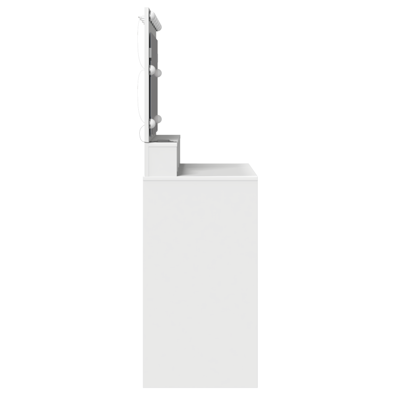 Тази модерна тоалетка е направена с внимание към стил и функционалност. Минималистичният дизайн с изчистени линии я прави идеално допълнение към всяка съвременна спалня. Освен че е стилна, тя предлага и практично решение за съхранение, благодарение на огледалото и осветлението. Материали: Изработена от устойчиви инженерни дървесини, тоалетката е здрава. С времето запазва своя елегантен вид и е устойчива на повреди. Включени компоненти: С плоските си рафтове, тоалетката предлага гъвкаво съхранение на козметика и декорации. Огледалото и LED осветлението я правят чудесна станция за грижа. Характеристики / Функция / Дизайн: Интегрирано LED осветление на огледалото осигурява отлична видимост. USB захранването и просто управление правят потреблението удобно и спестяващо енергия. Препоръчителни приложения: Подходяща за спални, тази тоалетка е идеална за грим и лична грижа. Лесно се вписва в различни интериори, независимо дали са формални или неформални. Поддържане: Лесно поддържайте тоалетката в отлично състояние с мека кърпа. Не забравяйте да изключите LED осветлението преди почистване. Моля, обърнете внимание, че трябва да използвате само сертифициран вход DC 5V. По-високото напрежение може да доведе до прегряване и да повреди устройството, както и до потенциален риск от прегряване и пожар. Не свързвайте този продукт към захранване, различно от описаното в ръководството, на табелката с името или изрично препоръчано от vidaXL. Този уред не трябва да се използва от деца под 15 години, както и от лица с намалени физически, сетивни или умствени способности или с липса на опит и познания относно използването на електронни уреди. Електричеството е опасно. Повредите и неправилният монтаж, употреба или промяна (подмяна на отделни компоненти) могат да доведат до повреда на уреда , което да доведе до токов удар и опасност за потребителя. Не използвайте този продукт във взривоопасна атмосфера, като например при наличие на запалими течности, газове и прах, или при температура над 50 градуса по Целзий или повече. Не включвайте продукта, ако свързващият кабел или захранването са видимо повредени. Ако външният гъвкав кабел или захранващ кабел на това осветително тяло е повреден, той трябва да бъде заменен изключително от производителя или негов сервизен агент, или от подобно квалифицирано лице, за да се избегне опасност. Изключете захранването по време на монтажа и поддръжката. Уверете се, че крушките са изстинали. Светлинният източник на това осветително тяло не може да се заменя; когато светлинният източник достигне края на експлоатационния си срок, цялото осветително тяло трябва да се замени. Само за употреба на закрито, не използвайте този продукт на открито.