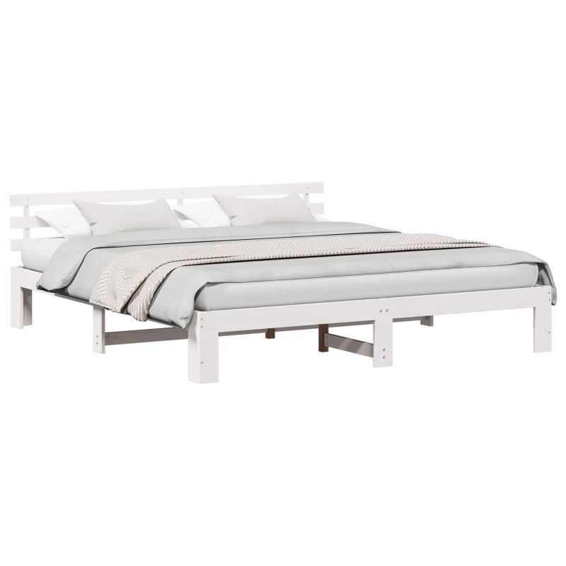 Рамка за легло с таблото Бяло 200 x 200 cm Солидно борово дърво