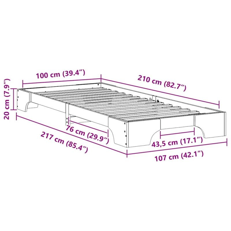 Леглово дъно Кафяво 100 x 210 cm Борово дърво масив