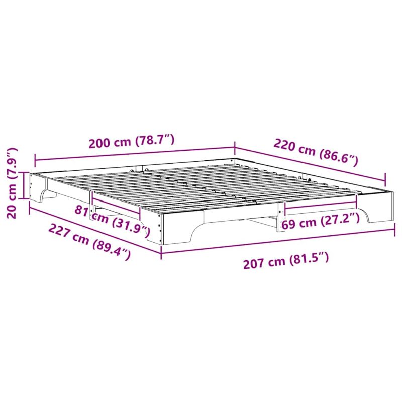 Рамка за легло Бяло 200 x 220 cm Солидно борово дърво