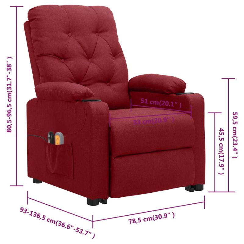Изправящ масажен стол, виненочервен, текстил
