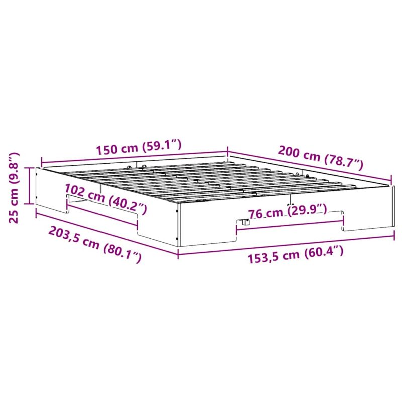 Леглово дъно Кафяво 150 x 200 cm Борово дърво масив