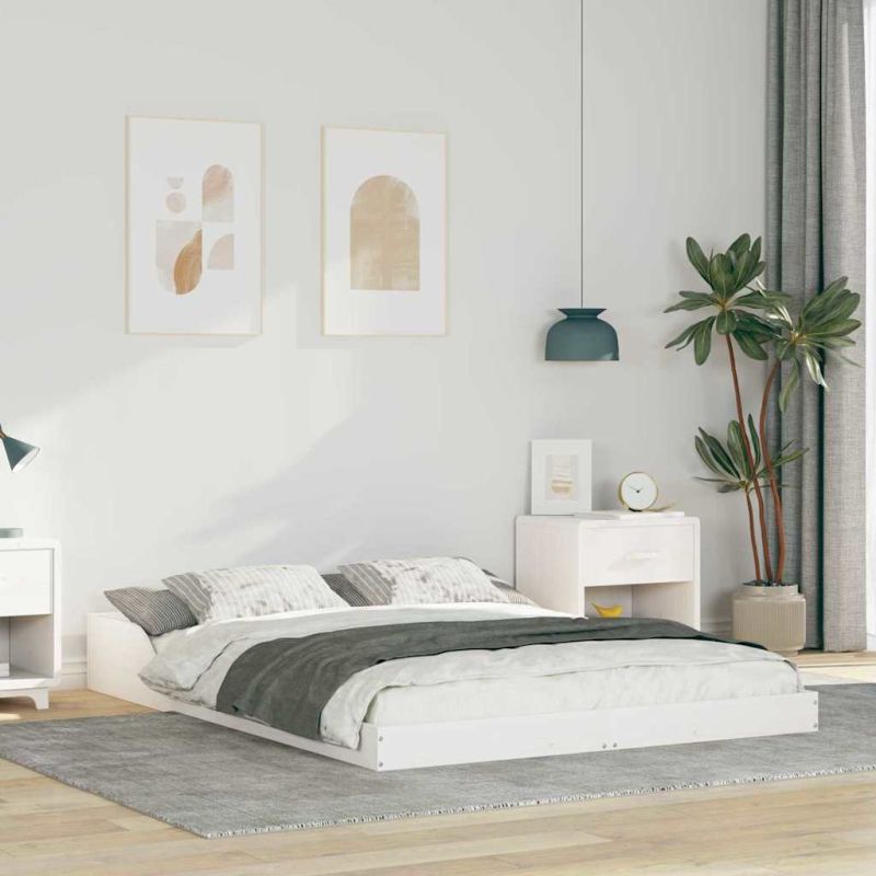 Рамка за легло Бяло 135 x 190 cm Солидно борово дърво