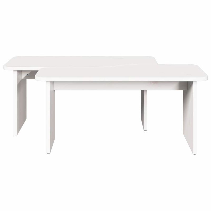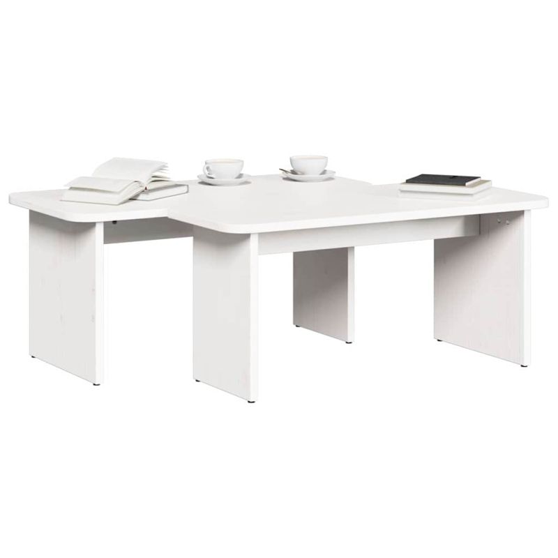 Масичка за кафе 2 pcs Бяло Борово дърво масив