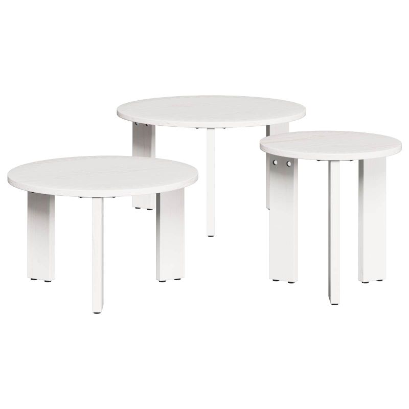 Масичка за кафе 3 pcs Бяло Борово дърво масив