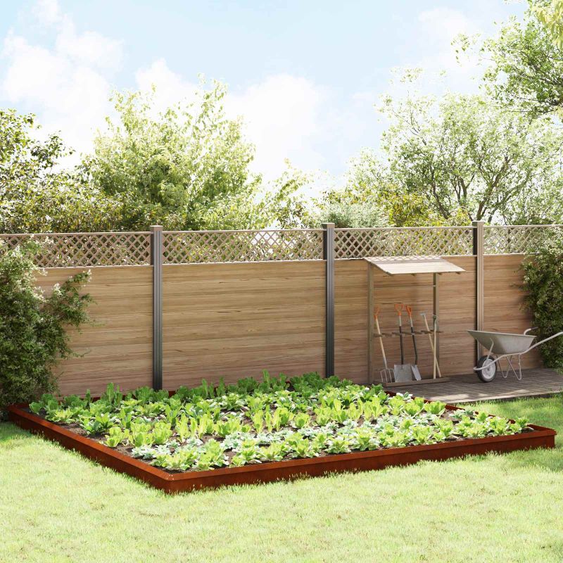 Тези метални огради предлагат перфектно решение за оформяне на градинските пространства с модерен стил и елегантност. Проектирани за открито, те имат чисти линии и минимални орнаменти, което ги прави лесни за интегриране във всякакви градински стилове. Идеални за всеки, който иска да подобри визията на градината си, те лесно могат да бъдат сглобени според нуждите. Издръжлива метална конструкция: Оградите са направени от здрав метал, осигуряващ отличен баланс между здравина и стил. Дълготрайната им конструкция предлага надеждна бариера срещу вредителите, докато елегантният метален финиш подобрява визията на всяко открито пространство. Тези огради ще запазят целостта си дори при лошо време, спокоен за ентусиастите на градинарството. Функционален дизайн: С модерен стил, оградите имат чисти линии и минималистичен подход, подходящи за различни градински естетики. Дизайнът се фокусира върху лесната употреба, с монтаж, изискващ само стандартна отвертка. Този подход осигурява бърз и безпроблемен монтаж, без компромис на визуалната привлекателност. Външно приложение: Те са специално проектирани за открито, идеални за създаване на специфични градински зони, запазвайки страхотната си визия. Този целенасочен дизайн отговаря на типичните нужди на градината, комбинирайки полезност с естетическа хармония. Лесна поддръжка: Поддръжката е супер проста. Просто ги избършете с влажна кърпа, за да премахнете мръсотията и да запазите чистия им вид. Този практичен подход предотвратява износването и удължава живота им, осигурявайки, че са функционални и привлекателни години наред. Изисквания за сглобяване: Сглобяването е необходимо с двама души и стандартна отвертка, което улеснява монтажа. След като бъдат поставени, оградите са стабилни и надеждни. Това гарантира, че те остават издръжливи и сигурни във времето, подобрявайки тяхната привлекателност и надеждност в градинската обстановка.