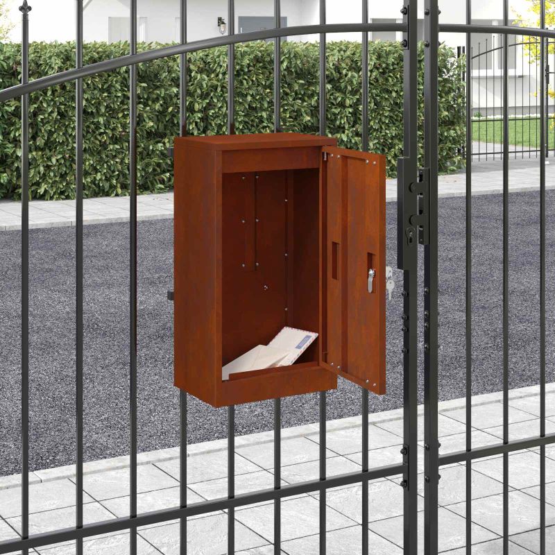 Тази съвременна стоманена пощенска кутия идеално комбинира стил и функционалност за открити пространства. Със своите изчистени линии и модерен дизайн, тя е елегантно допълнение на градината ви, докато осигурява практично решение за безопасно получаване на поща и пакети. Съвременният й стил лесно се вписва в различни външни пространства, предлагайки привлекателно и ненатрапчиво решение. Проектирана за външна употреба, тази пощенска кутия е основна част от всеки дом, която подобрява както визията, така и ефикасността. Идеална е за тези, които търсят комбинация от форма и функция и придава шикозен вид на обикновените градински пространства. Водноустойчиви материали Тази пощенска кутия е изработена от висококачествена стомана, която е избрана да устои на различни атмосферни условия, защитявайки я от дъжд и влага. Водоотблъскващите свойства й осигуряват надеждност през сезона, така че пощата ви остава безопасна и суха при всякакво време. Идеално решение за открито, където дълготрайността е от значение. Включени компоненти Функцията включва врата с панти от здрава стомана и удобни дръжки за лесно отваряне, запазвайки модерния вид. Заключващият механизъм осигурява безопасност на пощата ви, предоставяйки спокойствие с сигурността си. Всички компоненти работят в добре координирана хармония. Функционални характеристики Тази пощенска кутия предлага сигурност с ефективен заключващ механизъм, достатъчно място за поща и малки пакети, както и лесен достъп до подреждане на отпадъци. Всички тези функции правят тази пощенска кутия не само красива, но и практична. Препоръчителни употреби Идеална за градини и тераси, тя може да приеме пакети с различни размери, без да загуби естетическата си стойност. Напълно допълва различни външни стилове, предлагайки универсално решение, идеално за частни домове. Грижа и поддръжка Лесна поддръжка: просто избърсвайте с суха кърпа, за да запазите добрия вид на пощенската кутия. Избягвайте агресивни химикали, за да запазите структурната й цялост и естетическия вид. Тези мерки осигуряват дълготрайност и удовлетворение от ползването й през годините.