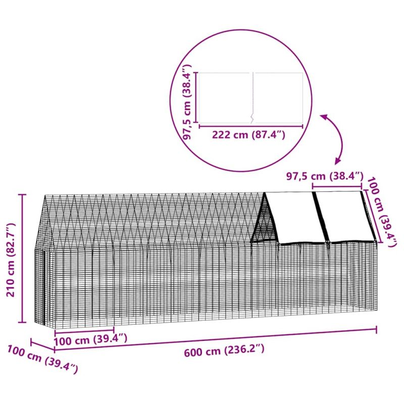 Клетка за пилета 2 pcs Сребрист 600 x 100 x 210 см