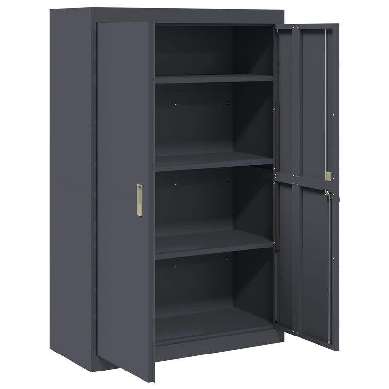 Този стилен шкаф за съхранение съчетава елегантния вид с практичност, идеален е за всяко съвременно или индустриално пространство. Студено валцуваната стомана не само че е здрава, а и придава модерен метален вид, който е чудесен за съхраняване на ценности и организиране на офис принадлежности. Проектиран да е многофункционален, шкафът подобрява естетиката и практичността на офиса или домашния ти кът с прекрасния си дизайн и компактни размери. Студено валцувана стомана: Този шкаф е изработен от здрава стомана, предлагаща дълготрайност и защита от ежедневното износване. Изборът на материал добавя както стил, така и устойчивост, изпълнявайки различни нужди за съхранение. Заключващи се врати: Шкафът има заключващи се врати, за по-голяма сигурност на ценни неща и чувствителни документи. Тази функция е особено полезна в офис среда или у дома, където трябва да се защити безопасността на децата. Индустриален и модерен дизайн: Стилният му вид съчетава индустриални елементи с модерен дизайн, който е идеален за апартаменти или елегантни офис пространства. Покритието му защитава от надрасквания и придава красив блясък на целия шкаф, правейки го и функционален, и атрактивен. Просторно съхранение: Шкафът предлага голямо пространство за съхранение на всичко – от офис материали до лични вещи, което прави организацията лесна. Лесна поддръжка: Шкафът е супер лесен за поддръжка - просто бършеш с влажна кърпа, за да запазиш вида му. Избягвай остри химикали, за да запазиш покритието му и дълготрайността на материала.