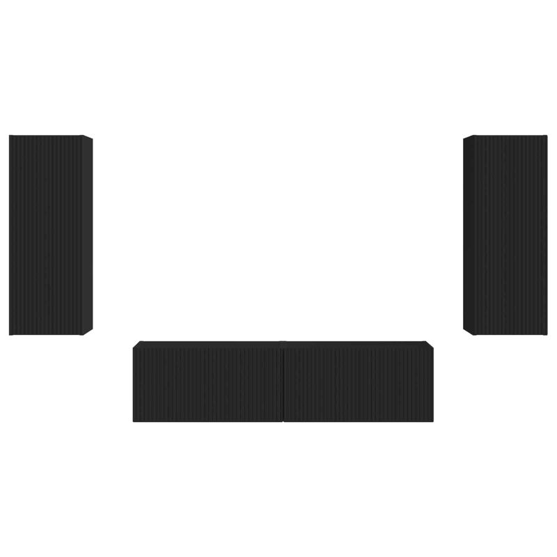 Комплект ТВ шкаф Монтиране на стена 2 pcs Черно Инженерно дърво