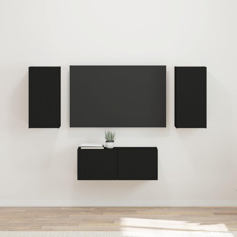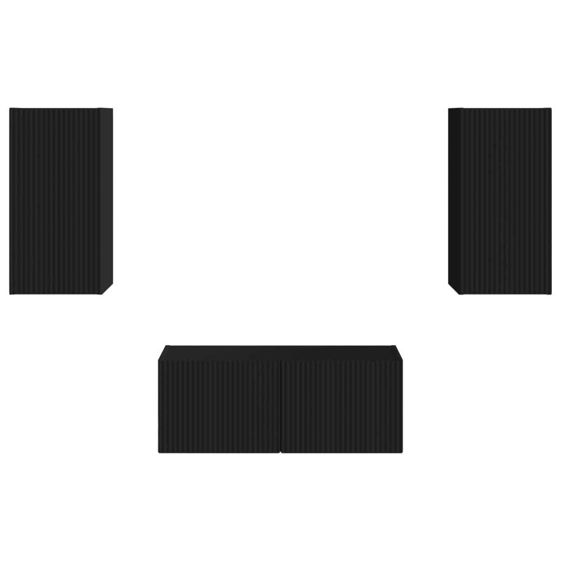 Комплект ТВ шкаф Монтиране на стена 6 pcs Черно Инженерно дърво