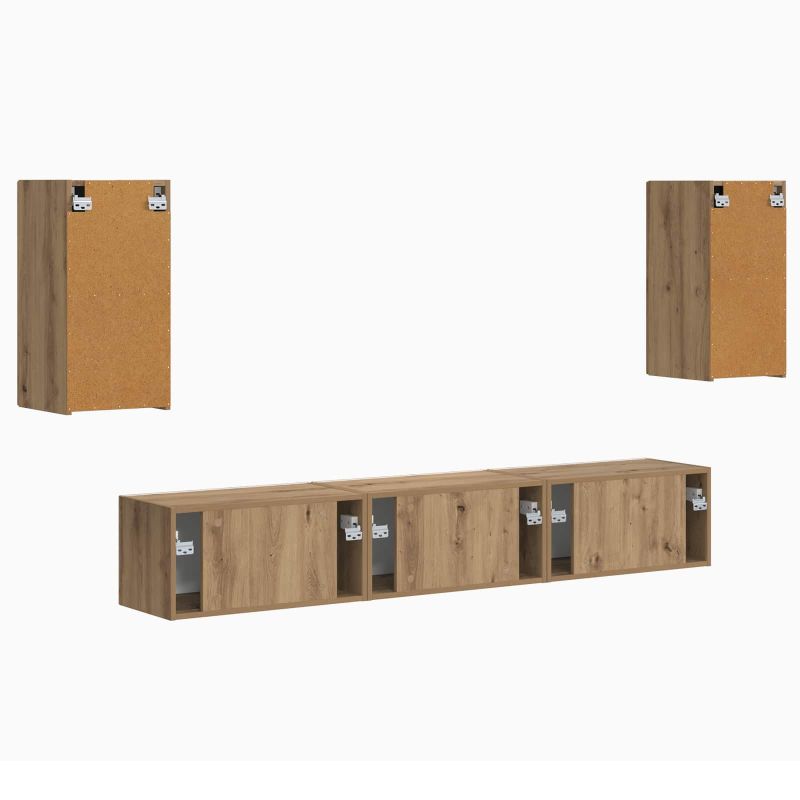Комплект ТВ шкаф Монтиране на стена 3 pcs Дъб Инженерно дърво