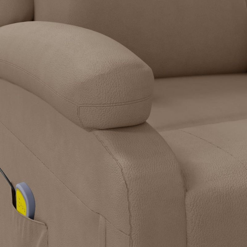 Облегнете се и се отпуснете в този изключително комфортен масажен стол! Функция за ръчно накланяне: Накланящият се стол е специално проектиран с 3 позиции на наклон, така че да можете да регулирате ръчно облегалката и поставката за крака според вашето удобство.Функция за вибрация: Представените 6 масажни точки ви позволяват да изпитате по-целенасочен масаж. Освен това включеното ръчно управление ви позволява да избирате различни програми за масаж. Функцията за масаж се захранва от USB конектор, който изисква сертифициран 5V USB захранващ източник (не е включен).Удобно седене: Дебело подплатената седалка, облегалката и широките подлакътници, покрити с изкуствена кожа, осигуряват уютно и топло усещане, което ви кара да се чувствате като в прегръдка, докато седите. Изкуствената кожа е много издръжлив материал. Устойчива е на петна, което я прави лесна за почистване с влажна кърпа. Гладката повърхност също така придава луксозен вид и красотата на истинската кожа.Здрава и стабилна рамка: Рамката, изработена от дърво и метал, осигурява здрава структура и стабилност. Този накланящ се фотьойл е удобен и издръжлив.