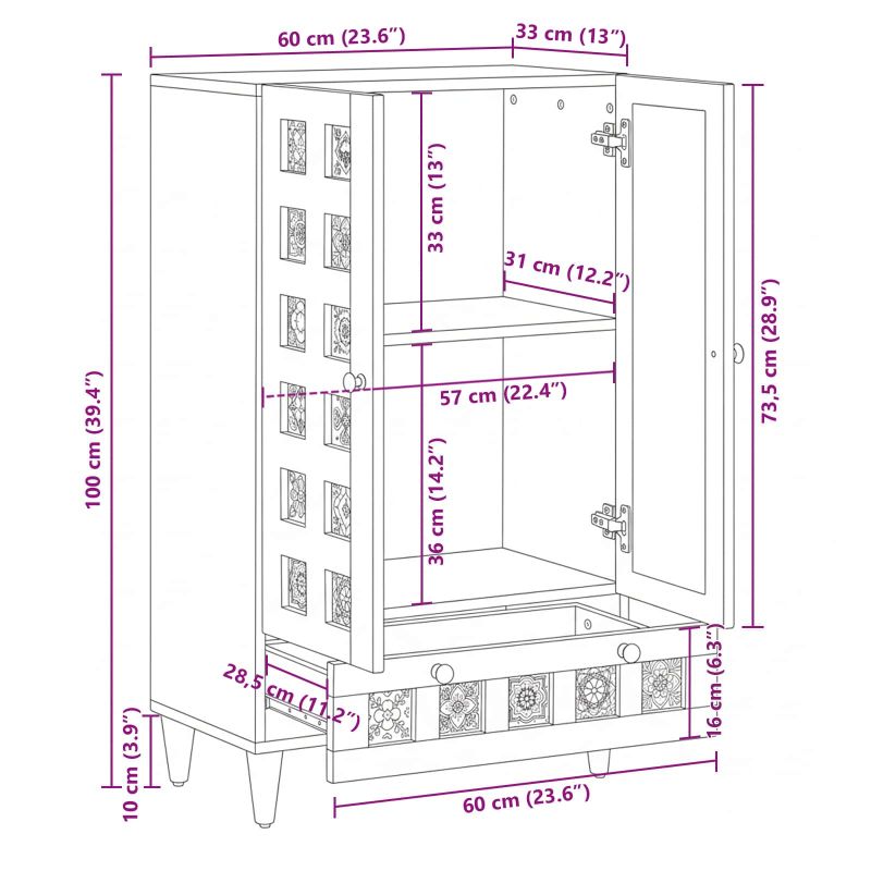 Този модерен висок шкаф е идеалната комбинация от стил, удобство и простота, перфектно вписваща се в трапезарии и жилищни пространства. С правоъгълния си дизайн и свеж вид, той носи чиста минималистична привлекателност, подхождаща на различни интериорни стилове. Високият шкаф предлага много възможности за съхранение с чекмеджета и врати с панти, помагащи ви да организирате нещата в трапезарията и още. Естествените текстури на манговото дърво и MDF придават стил и дълготрайност, добавяйки уют и характер на помещението ви. Материали: Направен от страхотно мангово дърво, което е известно с издръжливостта и хубавата си структура, съчетано с MDF за допълнителна стабилност. Този избор не само увеличава живота на шкафа, а и акцентира на неговия интересен вид, който лесно влиза сред останалата мебел. Функционални компоненти: Осигурява много място за съхранение с множество чекмеджета и врати с панти, снабдени с удобни дръжки. Лесните за управление дръжки дават комфорт, добавяйки естетически вид на шкафа и задоволявайки нуждите ви. Съвременни дизайнерски елементи: Високият шкаф е с квадратни дървени крака, което осигурява стабилност и повдига конструкцията, така че да остава стабилен навсякъде. Този дизайнерски ход поддържа минималистичния и функционален стил, което е супер атрактивно. Универсално приложение: Перфектен е за трапезарии, всекидневни или офиси, който иска красиво решение за съхранение, като удобно побира съдове, декорации и важни вещи. Визуалната му универсалност позволява да се адаптира към различни стилове, от съвременни до класически. Лесен монтаж: Доставя се като 1 x висок шкаф и изисква двойка с отвертка да го сглобите. Този методичен процес осигурява сигурно и точно монтиране. Поддържането на шкафа е лесно - просто го избърсвайте с суха кърпа и избягвайте агресивните почистващи препарати.