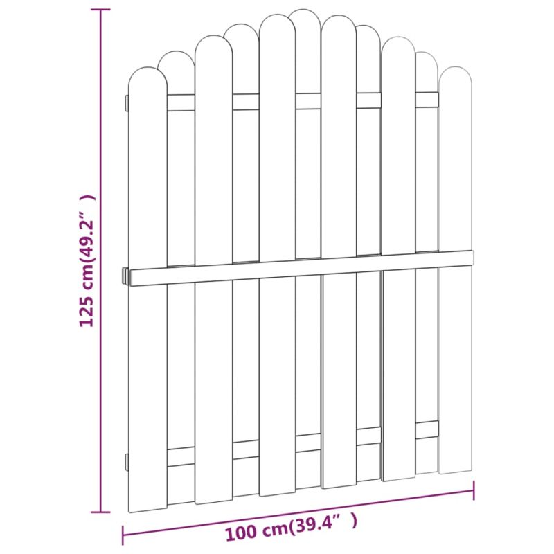 Масивната дървена градинска порта в сводест дизайн излъчва рустикален чар и ще бъде идеална входна точка за оградата около вашата градина или вътрешен двор. Тази издръжлива градинска порта е изработена от борова дървесина. Импрегнираната борова дървесина е здрава и устойчива на атмосферни влияния и гниене. Съставена от вертикални летви и хоризонтални и диагонални напречни елементи, оградната врата е здрава, стабилна и издръжлива. Нашата входна порта се сглобява лесно с включените пирони. Добре е да знаете: Пантите и куката за затваряне не са включени. Имайте предвид, че дървото е естествен продукт и може да има несъвършенства.