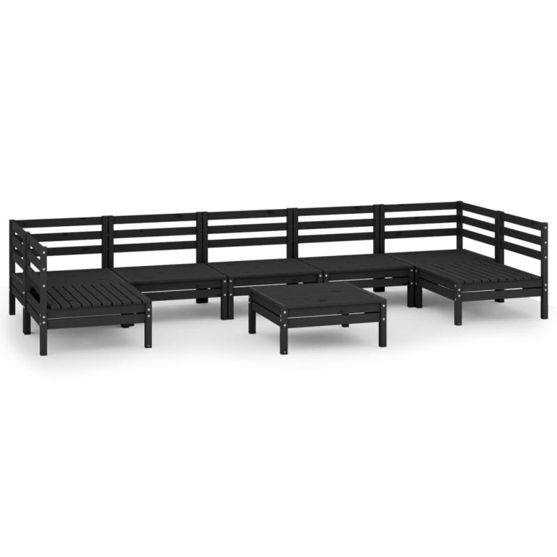 Градински лаундж комплект, 8 части, черен, бор масив