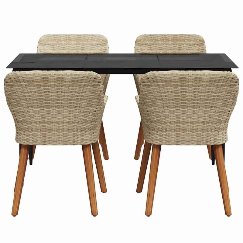 Комплект за хранене в градината 5 pcs Бежово полиратан