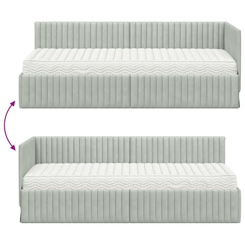 Начало Мебели Комплекти мебели Ъглова рамка за легло с матрак 2 pcs Светлосиво Кадифе