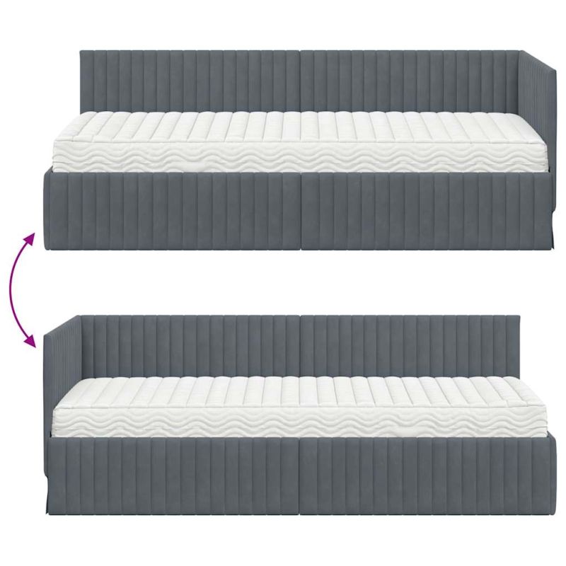 Ъглова рамка за легло с матрак с таблото 2 pcs Сив Кадифе