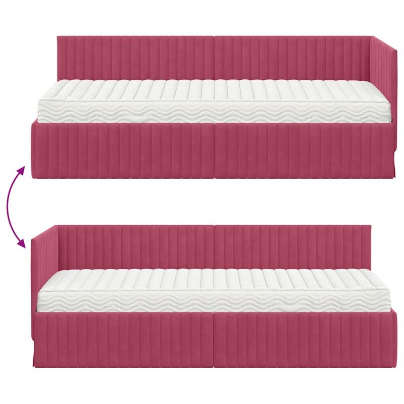 Тази виолетова ъглова леглова рамка с матрак е идеално съчетание между елегантност и практичност, проектирана да подобри видя на всяка спалня. Модерният стил с простота и елегантни детайли е подчертана от мекото кадифе, което носи луксозна визия. Нейният ъглов дизайн с пухкава табла лесно се вписва в съвременните интериори. Независимо дали освежавате спалнята си или просто искате нещо ново, тази леглова рамка предлага комфорт и стил, за да направи жилището ви по-качествено. Луксозно кадифено покритие Леглото и таблата са покрити с нежна кадифена тъкан, която излъчва стил и комфорт. Тази тъкан подобрява визуалната привлекателност и добавя невероятна мекота за приятно усещане в спалнята. Твърда платформа С ламелната платформа, леглото осигурява стабилна и равномерна поддръжка на матрака. Обезпечавайки, че както матраците с мемори пяна, така и пружинните варианти предлагат комфорт и трайност. Средно твърд матрак Включеният матрак със средна твърдост предоставя добро съотношение между мекота и поддръжка, подходящ е за всяка поза на сън. Изработен е с полиестерно кадифено покритие, което се адаптира към тялото за спокойствието на съня. Иновативна стенна табла Таблата е проектирана да спестява пространство и е монтирана на стената. Този умел дизайн не само че изглежда подредено, но също така осигурява стабилна основа за отдих или четене. Лесна поддръжка и сглобяване Поддържайте леглото просто, като избърсвате рамката с кърпа. Сглобяването е лесно - двама души с отвертка ще се справят бързо.