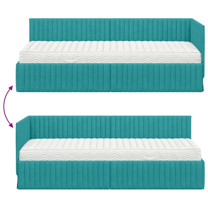 Ъглова рамка за легло с матрак с таблото 2 pcs Тюркоаз Кадифе