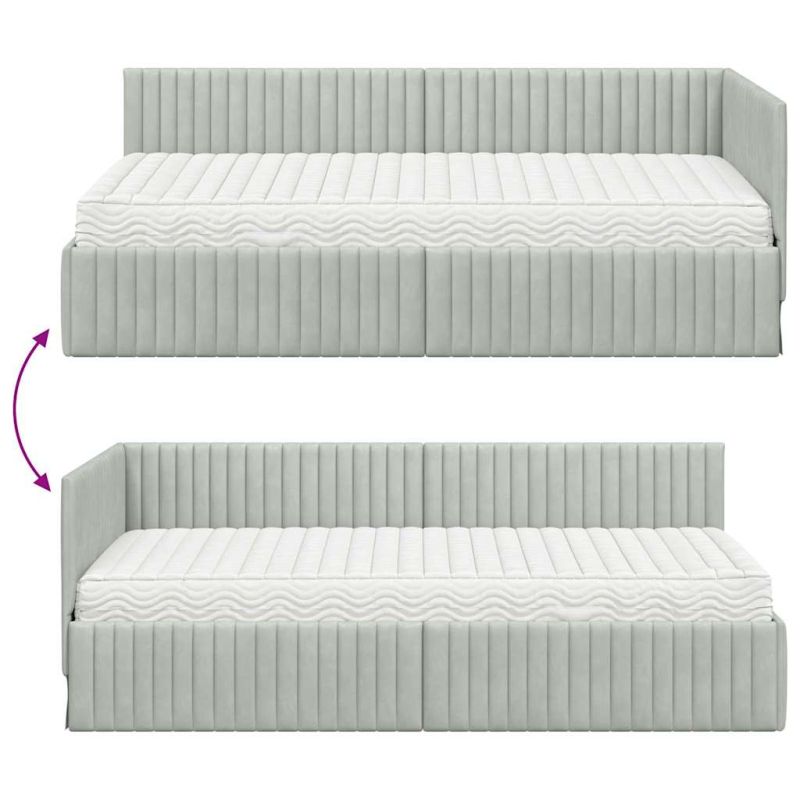 Ъглова рамка за легло с матрак 2 pcs Светлосиво Кадифе