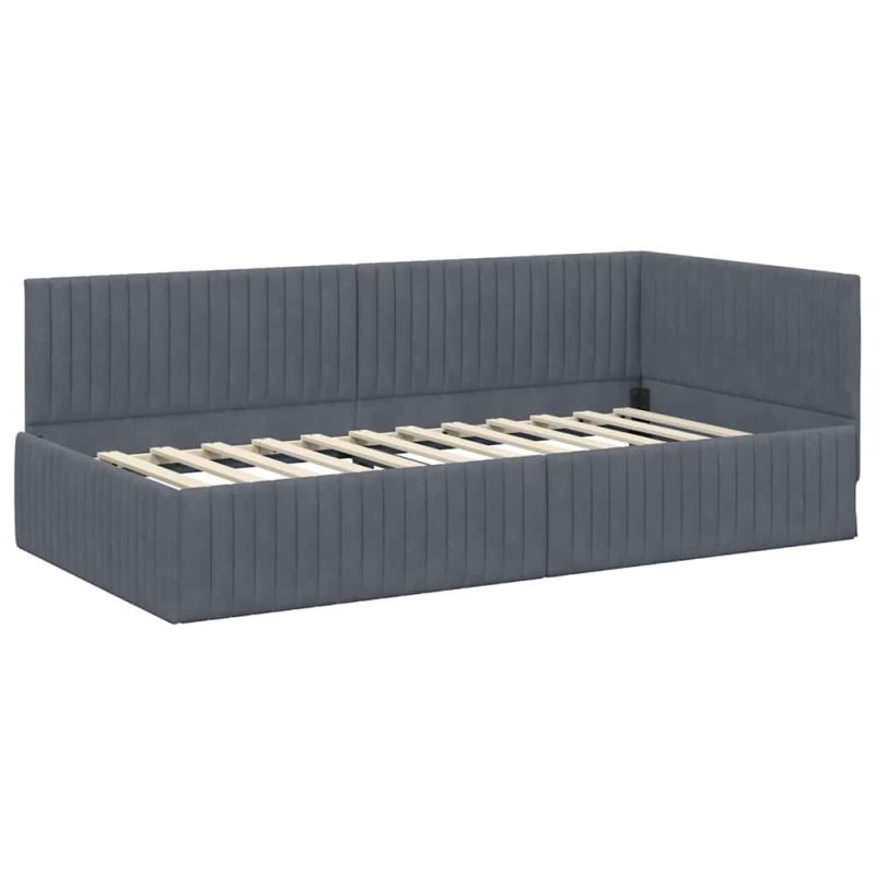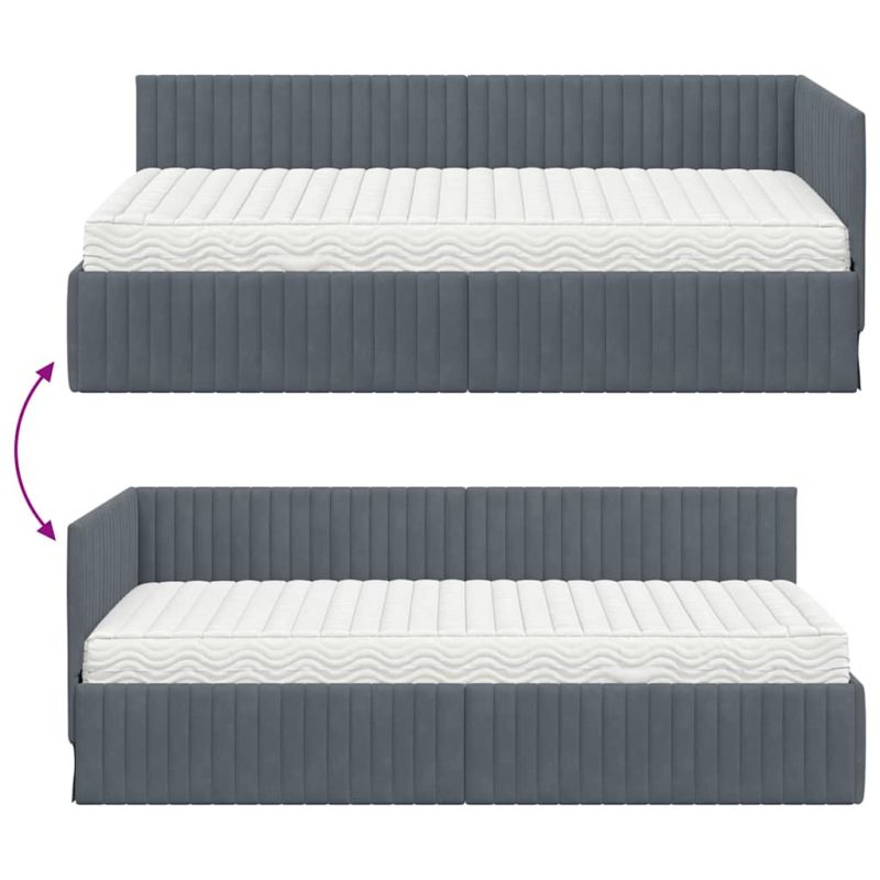 Ъглова рамка за легло с матрак с таблото 2 pcs Сив Кадифе