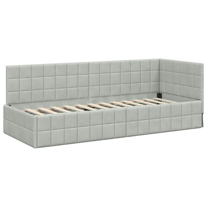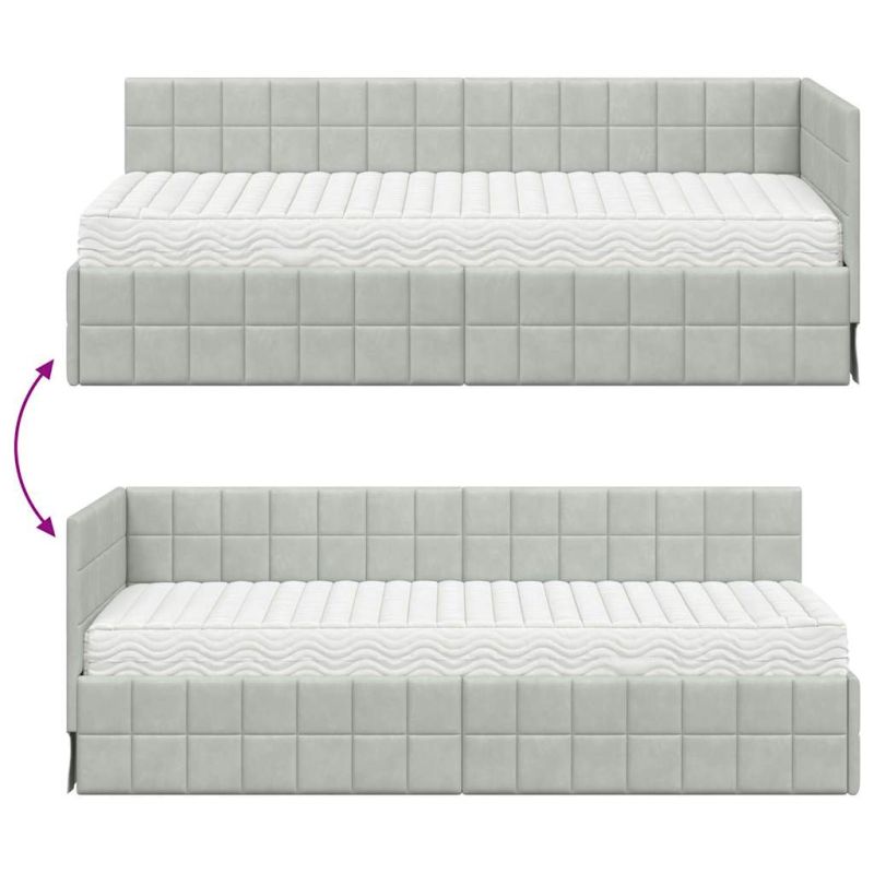 Начало Мебели Комплекти мебели Ъглова рамка за легло с матрак 2 pcs Светлосиво Кадифе