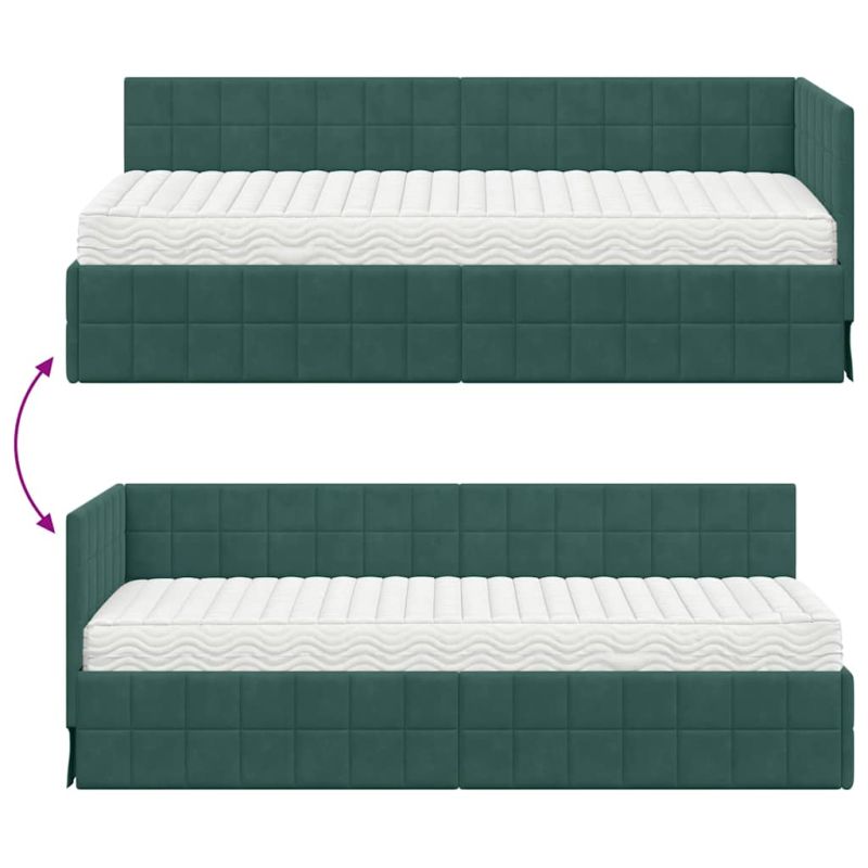 Начало Мебели Комплекти мебели Ъглова рамка за легло с матрак с таблото 2 pcs Зелен Кадифе