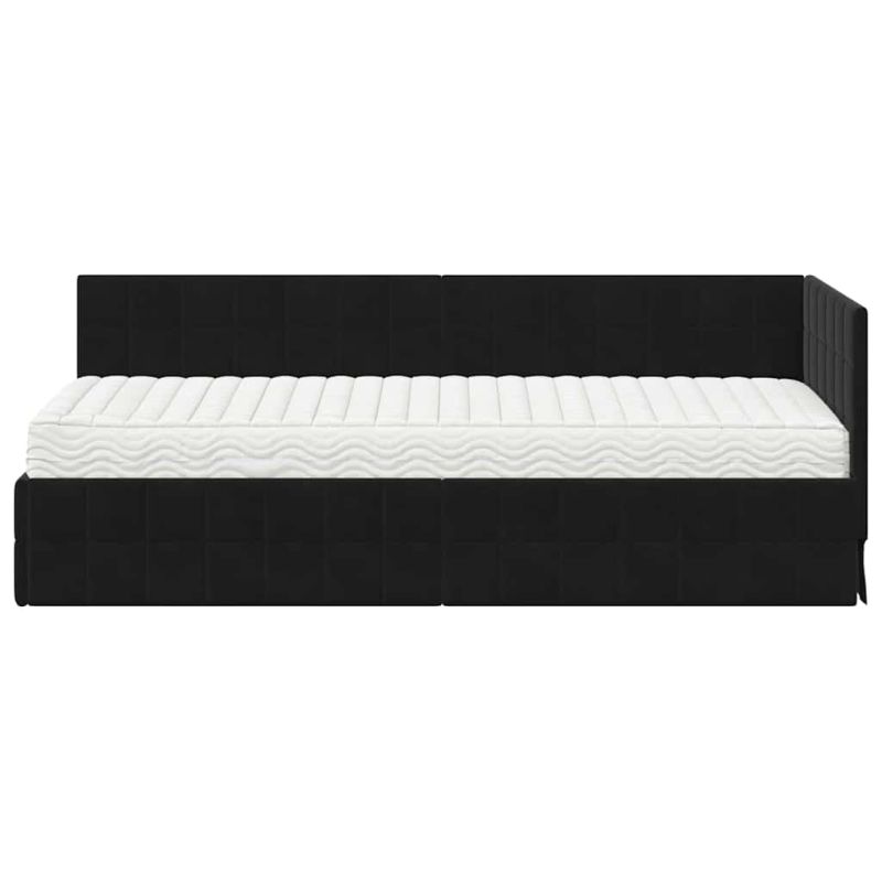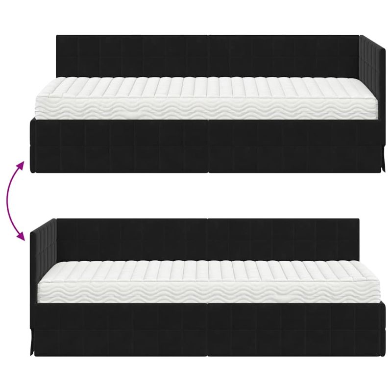 Ъглова рамка за легло с матрак с таблото 2 pcs Черно Кадифе