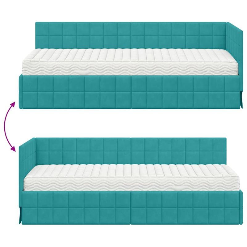 Ъглова рамка за легло с матрак с таблото 2 pcs Тюркоаз Кадифе