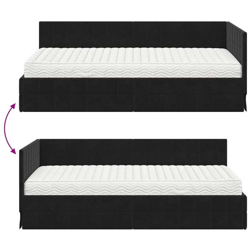 Начало Мебели Комплекти мебели Ъглова рамка за легло с матрак с таблото 2 pcs Черно Кадифе