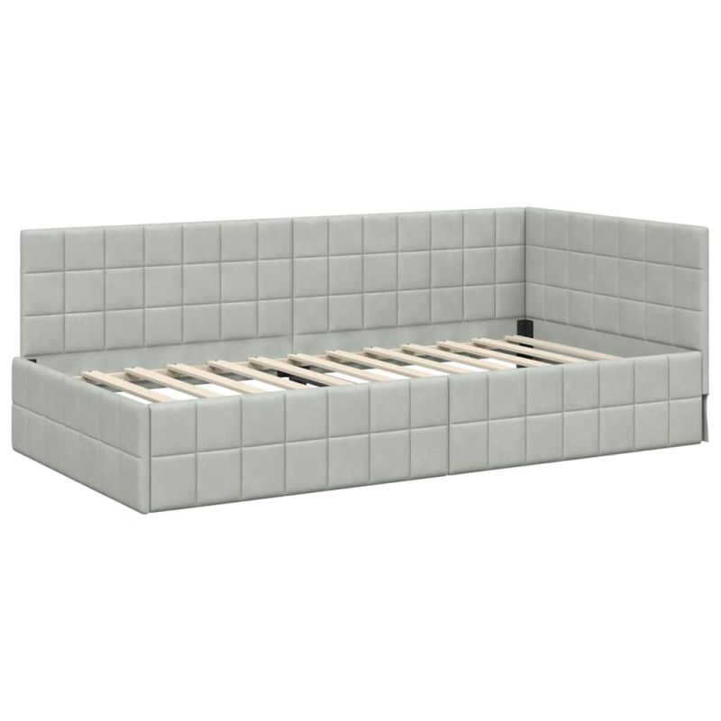 Ъглова рамка за легло с матрак 2 pcs Светлосиво Кадифе