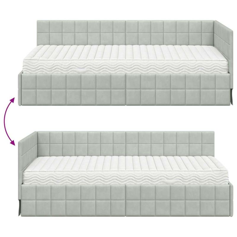 Начало Мебели Комплекти мебели Ъглова рамка за легло с матрак 2 pcs Светлосиво Кадифе