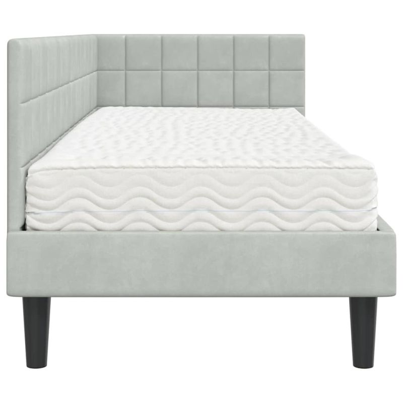 Ъглова рамка за легло с матрак 2 pcs Светлосиво Кадифе