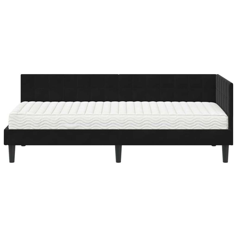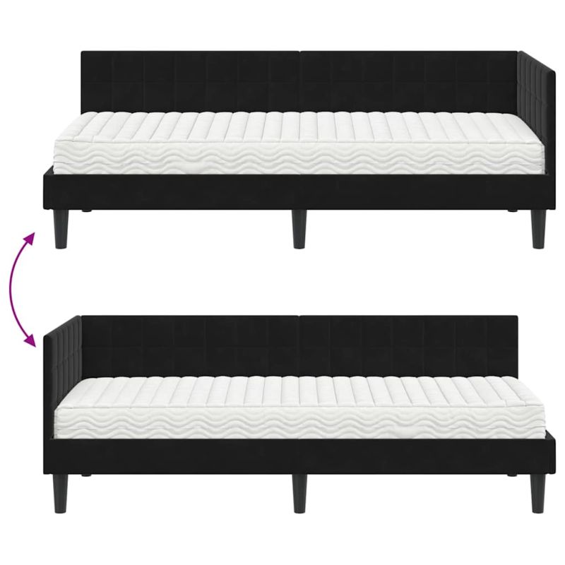 Ъглова рамка за легло с матрак с таблото 2 pcs Черно Кадифе