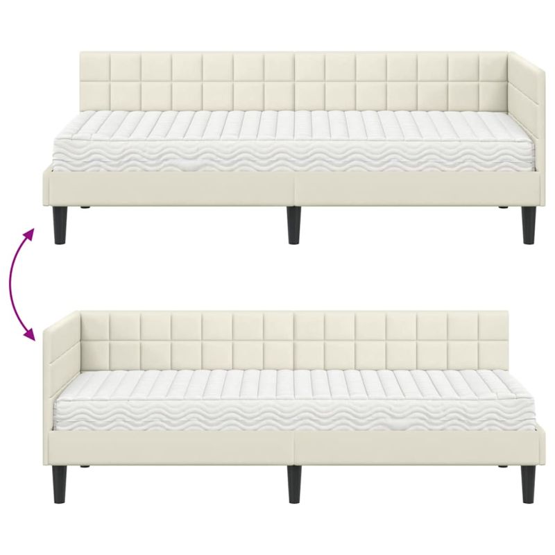 Ъглова рамка за легло с матрак с таблото 2 pcs Крем Кадифе